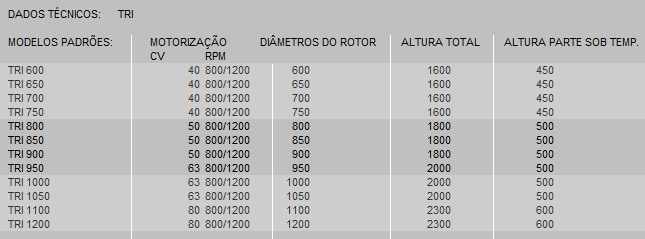 Rotores do tipo fechado c/ alto rendimento e baixa pressão